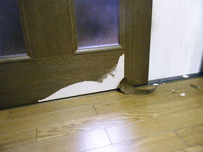 扉のクロスがビリビリ ツメでガリガリやってるうちにこんな事に