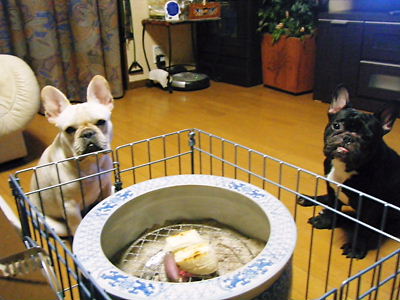ジュニちゃんとテツくん、火鉢をちゃーんと見つめてるんですね。